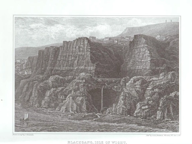 This engraving of Blackgang and the undercliff steps back in time as the passage of time and erosion has weathered the cliffs back a good 12 meters plus. Looking closely at the print on the top right you can see what appears to be the Pepperpot and early form of lighthouse.
